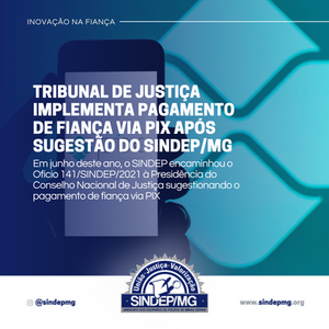 Preocupado com os transtornos sofridos pela categoria em relação aos procedimentos de recolhimento, guarda e depósito de fianças, em junho deste ano, o SINDEP/MG encaminhou Ofício 141/SINDEP/2021 (Protocolo Eletrônico CNJ) à Presidência do Conselho Nacional de Justiça sugestionando a implementação do pix como forma de recolhimento de fiança, com o intuito de modernizar o sistema de justiça através das tecnologias disponíveis.