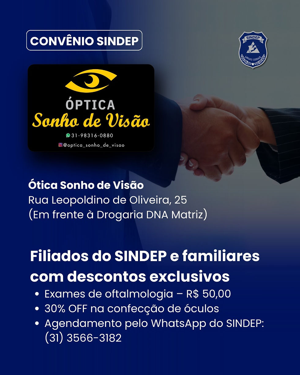 SINDEP firmou parceria com a Ótica Sonho de Visão para garantir mais cuidado e bem-estar aos seus filiados e familiares.